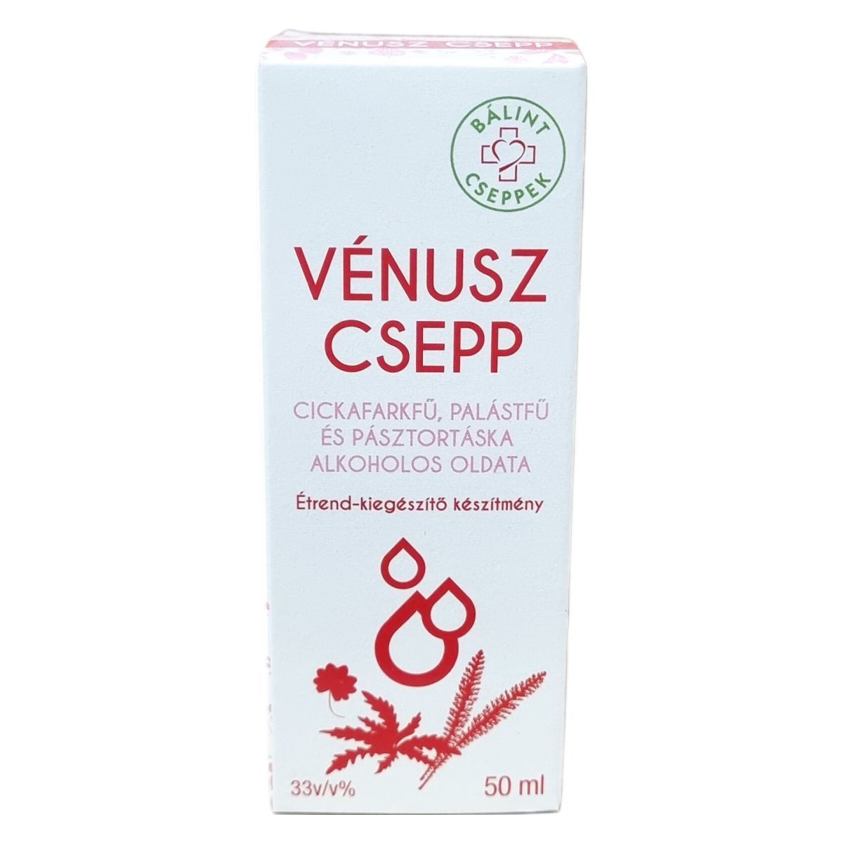 A Vénusz csepp cickafarkfű (Achillea millefolium), palástfű (Alchemilla vulgaris) és pásztortáska (Capsella bursa pastoris) alkoholos oldata. A cickafarkfű (Achillea millefolium) azulént (illóolaj) tartalmaz. A palástfű taninokat-, a pásztortáska pedig flavonoidokat tartalmaz. Várandósság és szoptatás ideje alatt a Vénusz csepp alkalmazása nem ajánlott! Alkalmazása: belsőleg: 1-2 x 21 csepp étkezés előtt 1 dl vízben oldva.