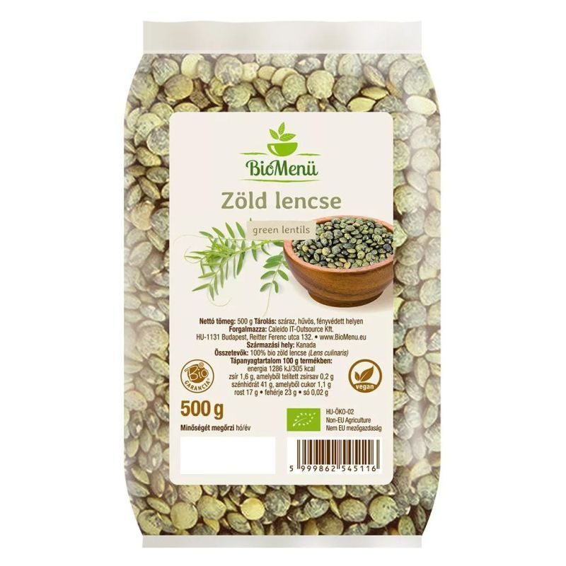 Összetevő: 100% bio zöld laird lencse (Lens culinaris); Allergének: nyomokban glutént és szezámmagot tartalmazhat.