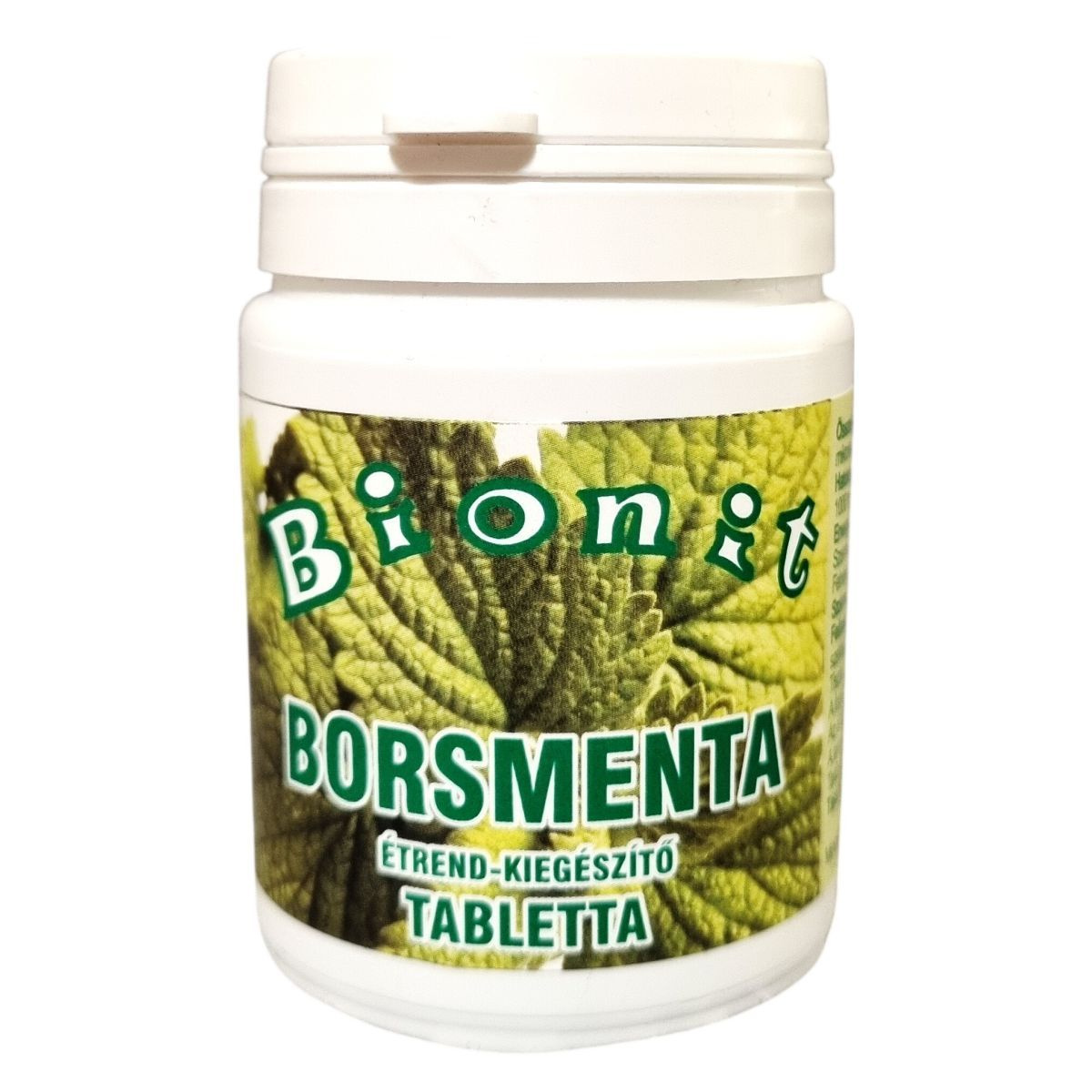 A Bionit Borsmenta tabletta Magyarországon készül, tiszta tömege 50 g, ami körülbelül 150 tablettát jelent. Az étrend-kiegészítő borsmentalevél granulátumot tartalmaz, a napi adag 1000 mg. A termék cukrot (szőlőcukor formájában) is tartalmaz, valamint mikrokristályos cellulózt, magnézium-sztearátot és talkumot. Az ajánlott fogyasztási mennyiség betartása fontos, és a termék nem helyettesítheti a különböző ételekből származó tápanyagokat. A készítmény tartósítószerektől, színezékektől és aromáktól mentes, valamint gyermekektől elzárva ajánlott tartani.