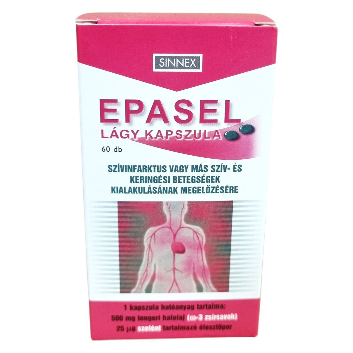Az EPASEL lágy kapszula egy nem gyógyszernek minősülő gyógyhatású készítmény, amely hatását szakirodalmi adatok és állatkísérleti eredmények támasztják alá. Különösen ajánlott szívinfarktus vagy más szív- és keringési betegségek kialakulásának megelőzésére. Egy kapszula 500 mg tengeri halolajat tartalmaz, melynek ω-3 zsírsav-tartalma 18% eikozapentaénsav (EPA) és 12% dokozahexaénsav (DHA), valamint 25 µg szelént tartalmazó élesztőport. Fontosabb segédanyagok a glicerin és a szorbit. A készítmény nem alkalmazható vérzékenység vagy súlyos májbetegség esetén. Tárolása legfeljebb 25 °C-on ajánlott, és gyermekek elől gondosan el kell zárni.