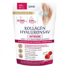 Az INTERHERB KOLLAGÉN HYALURONSAV INTENSE italpor egy eperkrém ízű étrend-kiegészítő, amely I. és II. típusú kollagén peptideket, hyaluronsavat, valamint kurkuma és ördögcsáklya kivonatot tartalmaz. A termék célja, hogy támogassa a porcok és ízületek védelmét, különösen a kor előrehaladtával vagy fokozott fizikai aktivitás esetén. A C-vitamin hozzájárulhat a normál kollagénképződéshez, míg a kurkuma és az ördögcsáklya segíthet az ízületek mozgékonyságának és rugalmasságának megőrzésében. A termék fehérjében gazdag, természetes módon glutén- és laktózmentes, valamint cukor- és tartósítószer-mentes. Az italpor könnyen oldódik, és kellemes ízű, így egyszerűen beilleszthető a mindennapi étrendbe.