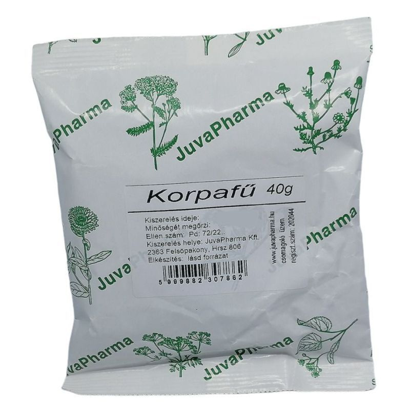 A Juvapharma korpafű májregeneráló, vesekő- és -görcsoldó, vese- és húgyhólyaggyulladás, asztma, reuma és hasmenés ellen lehet hatásos. Mellékhatás: mérgezés az adagolást betartva a spórák se mellékhatást, se mérgezést nem okoznak. Súlyos betegségek gyógyításában mindazonáltal használható tea formájában, ha orvos vagy gyógyszerész állítja be a pontos adagolást.