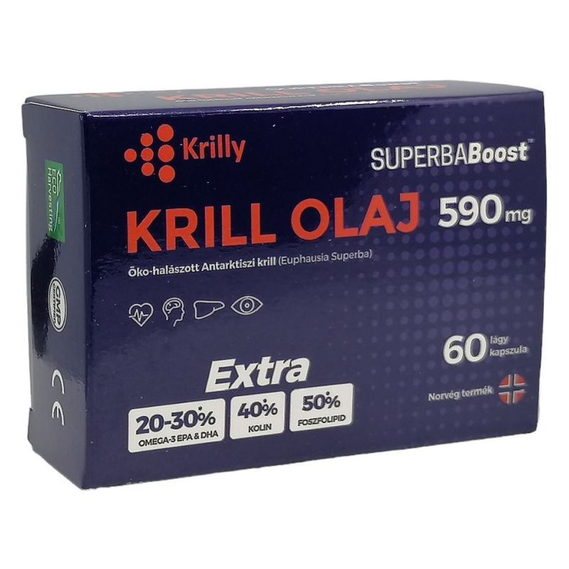 A krillolaj előnye a hagyományos halolajjal szemben, hogy foszfolipid-alapú, így jobban felszívódik, kevesebb "halas utóízt" okoz, és stabilabb, oxidációra kevésbé hajlamos. Rendszeres fogyasztása segíthet csökkenteni a koleszterinszintet, mérsékelni az ízületi fájdalmakat, valamint támogatja a kognitív funkciókat és a látást.