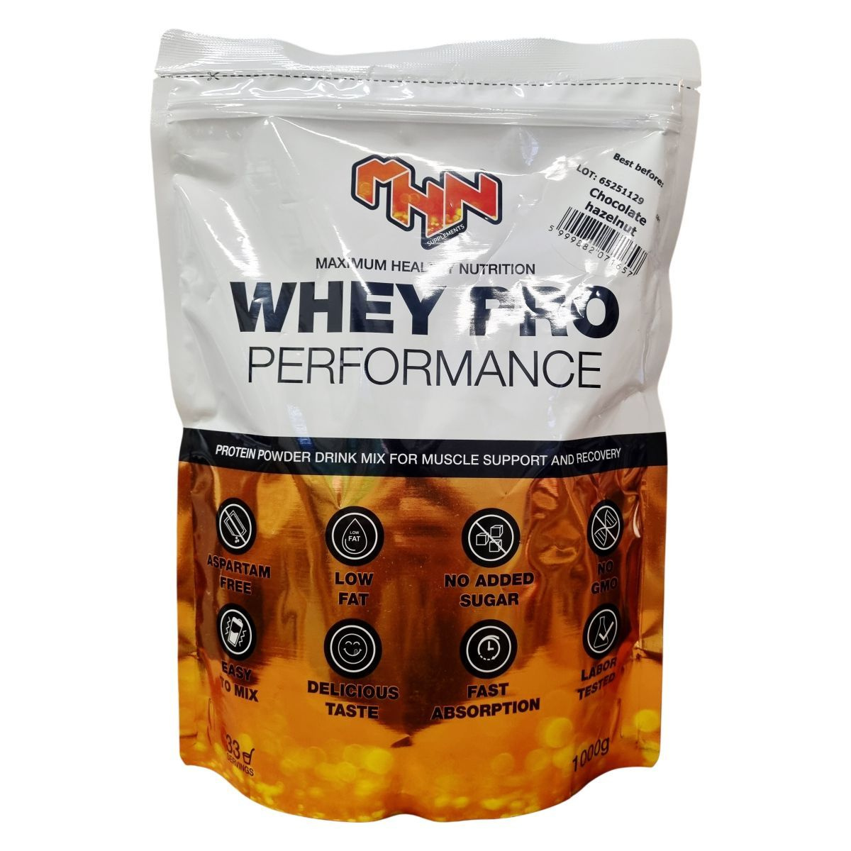 MHN Whey Pro Performance tejsavó fehérje - mogyorós csoki 1000g leírása