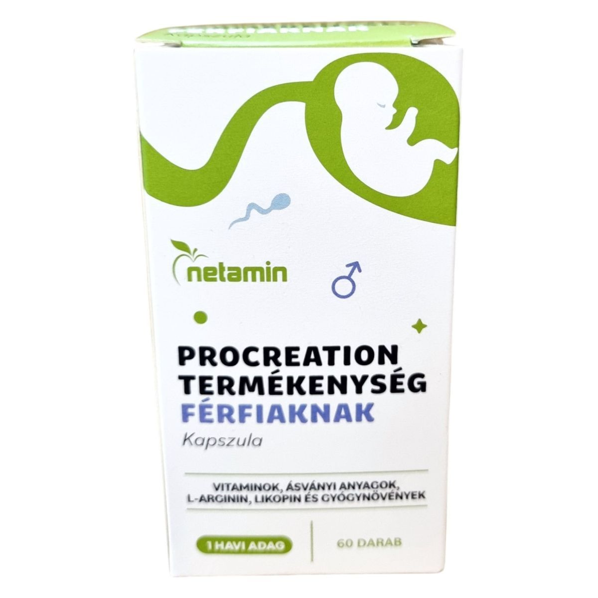 A Netamin ProCreation termékenység támogatására kifejlesztett étrend-kiegészítő férfiak számára. A termék vitaminokat, ásványi anyagokat, L-arginint, likopint és különféle gyógynövény-kivonatokat tartalmaz, mint például shilajit, maca és ashwagandha. Ezek az összetevők hozzájárulhatnak a normál spermaképződéshez, a vér normál tesztoszteronszintjének fenntartásához, valamint a férfi nemi működés támogatásához. A termék napi adagja két kapszula, amelyet bő folyadékkal, lehetőleg étkezés közben ajánlott bevenni. A termék nem helyettesíti a vegyes étrendet és az egészséges életmódot, és nem ajánlott 12 év alatti gyermekek, terhesek és szoptatók számára.