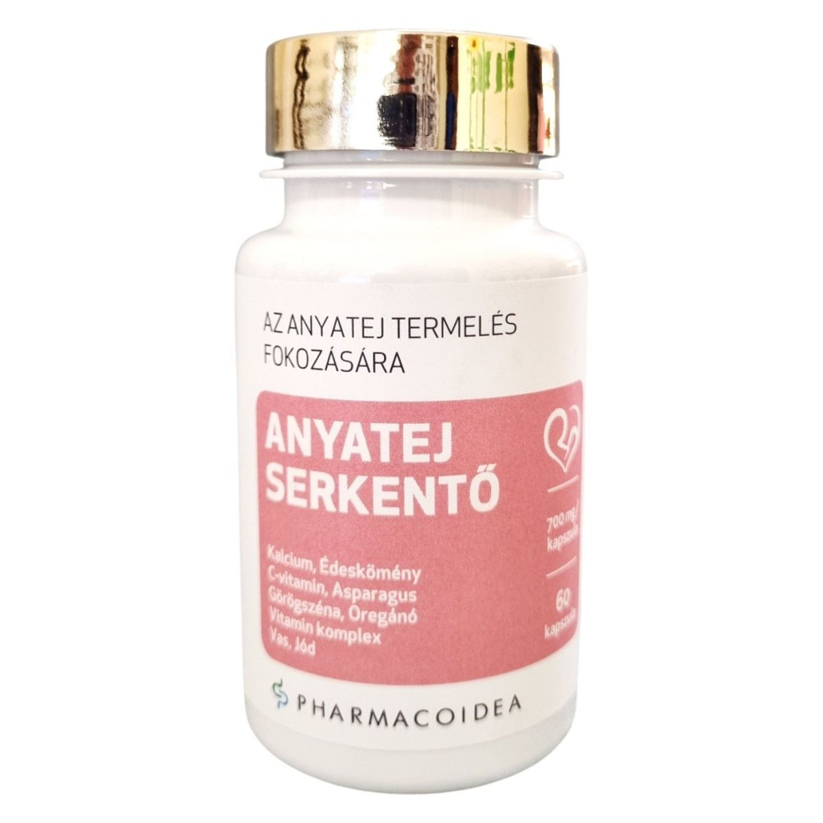 Az ANYATEJ SERKENTŐ étrend-kiegészítő célja, hogy támogassa az anyatej termelését és elősegítse a normál tejmirigy funkciók fenntartását a szoptatás alatt. A termék összetevői, mint a kalcium, édeskömény, C-vitamin, és más vitaminok, hozzájárulhatnak a szülés utáni regenerációhoz, az immunrendszer normál működéséhez, valamint a fáradtságérzet csökkentéséhez. A termék 60 kapszulát tartalmaz, és napi 1 kapszula fogyasztása ajánlott. A termék gyártója a Pharmacoidea Kft., és az OGYÉI notifikációs száma 27644/2021.