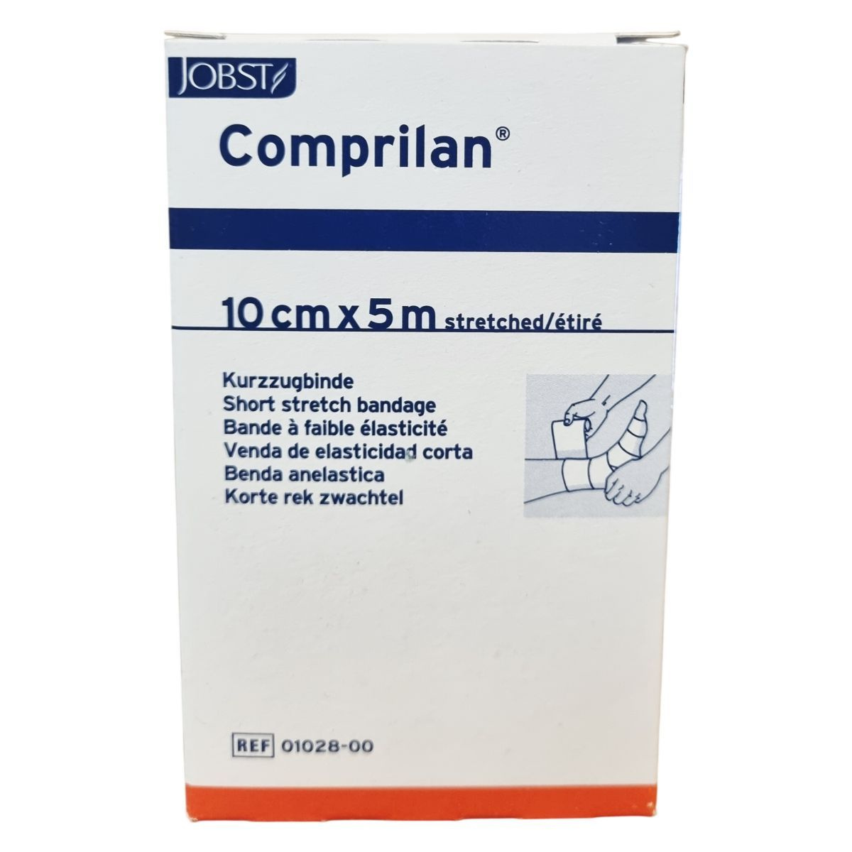 A JOBST Comprilan® kompressziós pólya rövid megnyúlású és 10 cm széles, 5 méter hosszú textilpólya, amely 100% pamutból készült, latexmentes, így biztonságos használatot biztosít. Orvosi eszköz kategóriába tartozik, amely a vénás és nyirokrendszeri problémák kezelését támogatja. A terméket Németországban gyártják, és szobahőmérsékleten, száraz, napfénytől védett helyen kell tárolni. A csomagoláson található további információ a termék méretéről és gyártási adatairól.