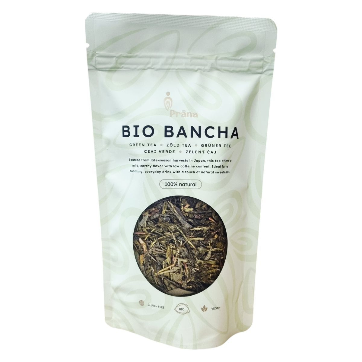 A Prána BIO BANCHA tea japán late-season szüretből származik, természetes összetételű, 100%-ban bio és vegán. Nem tartalmaz glutént és a vonatkozó bio-tanúsítvány garantálja minőségét. Az allergén figyelmeztetés jelzi, hogy esetlegesen tartalmazhat földimogyoró, diófélék és szezámmag nyomokat. A termék 100g-os kiszerelésben kapható, származási helye Japán. A megfelelő elkészítés érdekében az adagolás és áztatási idő megtalálható a csomagoláson. A tárolást javasolt száraz, hűvös helyen végezni.