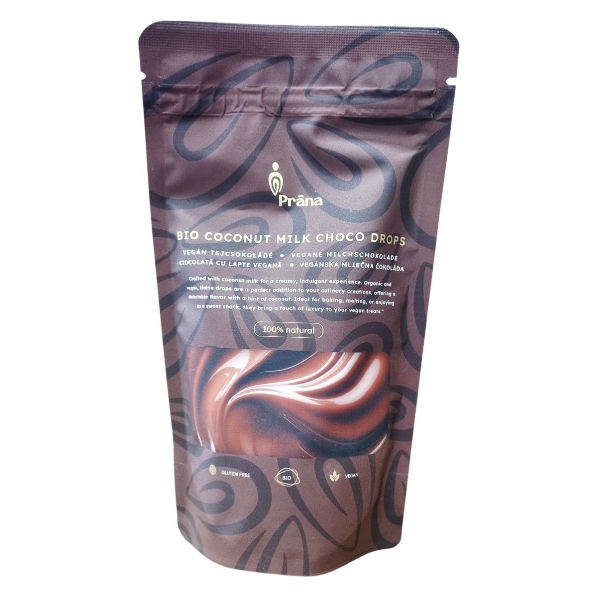 A Prána BIO COCONUT MILK CHOCO DROPS egy organikus eredetű, vegán csokoládé, amely kókusztejjel készült, így kiválóan krémes és gazdag ízű. A kakaó és a kókusz harmonikus keveréke kényezteti az ízlelőbimbókat, miközben természetes, 100%-ban bio alapanyagokat tartalmaz. A termék Bulgáriában készül, és 43% kakaómasszából, 35% kókuszvirágcukorból, 12,5% kókuszkrémből, 9% kakaóvajból, valamint napraforgó-lecitinből áll. A termék vegán, gluténmentes és alkalmas különböző sütési, díszítési feladatokra vagy önálló nassolásra. Nyomokban földimogyorót, dióféléket és szezámmagot tartalmazhat, ezért allergiásoknak figyelniük kell.