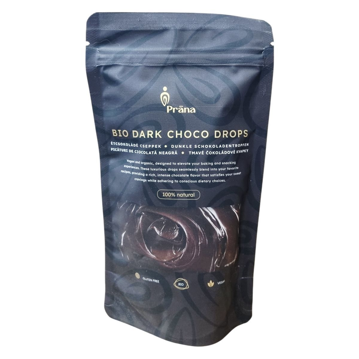 A Prāna Bio Dark Choco Drops vegán és organikus étcsokoládé cseppek, melyeket kifejezetten az ízélmény fokozására terveztek sütéshez és nassoláshoz. A termék 51%-ban kakaómasszát, 33%-ban kókuszvirágcukrot, 15%-ban kakaóvajat és napraforgó lecitinből áll, melyek mind bio gazdálkodásból származnak. A csokoládé cseppek eredete Bulgária. Az élelmiszer nyomokban tartalmazhat földimogyorót, dióféléket és szezámmagot, ezért allergén érzékenyeknek figyelniük kell rá. A termék gluténmentes és mentes minden állati eredetű összetevőtől. Tárolását illetően ajánlott száraz, hűvös helyen tartani. A termék magas kalóriatartalma mellett gazdag zsír- és cukortartalommal rendelkezik, így ízében gazdag és intenzív csokoládéélményt nyújt, miközben megfelel a tudatos, növényi alapú étrendet követők igényeinek is.