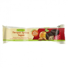 Az aromás mézes marcipán, a ropogós pörkölt manduladarabok és a gyümölcsös sárgabarack kiváló kombinációja a textúra és az íz különleges összjátékát adja. A szájban olvadó étcsokoládéból készült héj tökéletessé teszi a csokoládé rajongók számára. Minden összetevője ellenőrzött ökológiai gazdálkodásból származik. Nádcukorral lett édesítve. A csokoládé kakaótartalma 55%.