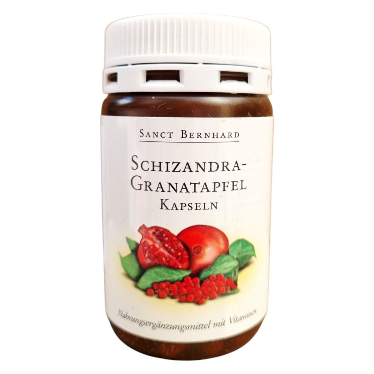 A SANCT BERNHARD Schizandra-Gránátalma kapszula egy étrend-kiegészítő, amely 90 kapszulát tartalmaz. A termék fő összetevői a schizandra és gránátalma kivonatok, amelyek antioxidáns tulajdonságokkal bírhatnak. A B6-, B12-vitamin és folsav hozzájárulhatnak az immunrendszer normál működéséhez. A kapszulák zselatinból készültek, és tartalmaznak kukoricakeményítőt, valamint csomósodást gátló anyagokat is. A termék Németországban készült, és a magyarországi forgalmazója az ODP Vital Kft. A kapszulákat száraz, sötét helyen, 25 °C alatt kell tárolni, és a gyermekektől elzárva tartandók. Az ajánlott napi mennyiséget nem szabad túllépni.
