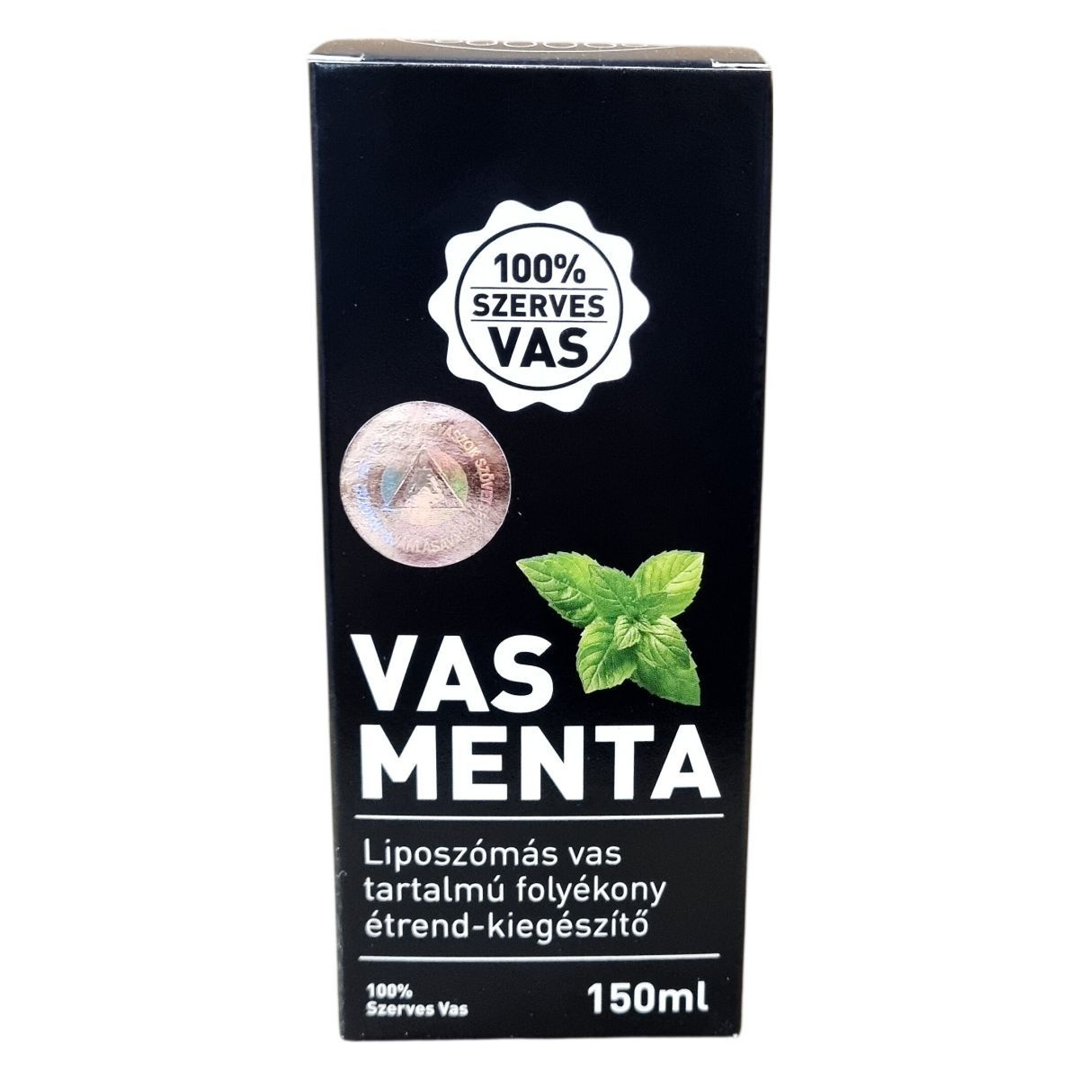 A Hymato Products Kft. által gyártott Vas Menta egy 150 ml-es, liposzómás vas tartalmú folyékony étrend-kiegészítő, amely a vas felszívódási zavarainak és vashiánynak a kezelésére ajánlott. A termék 100%-ban szerves vasat tartalmaz, ami jól hasznosuló formában áll rendelkezésre. A készítmény hatóanyagai közé tartozik a huminsav, para-amino-benzoesav (PABA) és az L-arginin, melyek együttes jelenléte támogathatja a vas felszívódását és hasznosulását a szervezetben. A termék emulgeálószere szójalecitin, és tartósítószere kálium-szorbát, továbbá mentolt is tartalmaz, édesítőszert viszont nem. Ez a termék vegánoknak is megfelelő, GMO-, cukor- és laktózmentes. A kezelendő adagot napi 5 ml jelenti, amit felrázva, egyedül vagy folyadékban elkeverve javasolt fogyasztani. Gyermekek elől elzárva kell tartani, és 6 év alatti gyermekeknek nem adható. A termék hűvös, fénytől védett, száraz helyen történő tárolást igényel, felbontás után pedig hűtőszekrényben kell tartani, és 30 napon belül el kell fogyasztani. Az étrend-kiegészítő nem helyettesíti a vegyes étrendet és az egészséges életmódot, továbbá a túlzott vasbevitel egészségkárosító hatású lehet, ezért a fogyasztásakor ajánlott az előírásokat betartani.