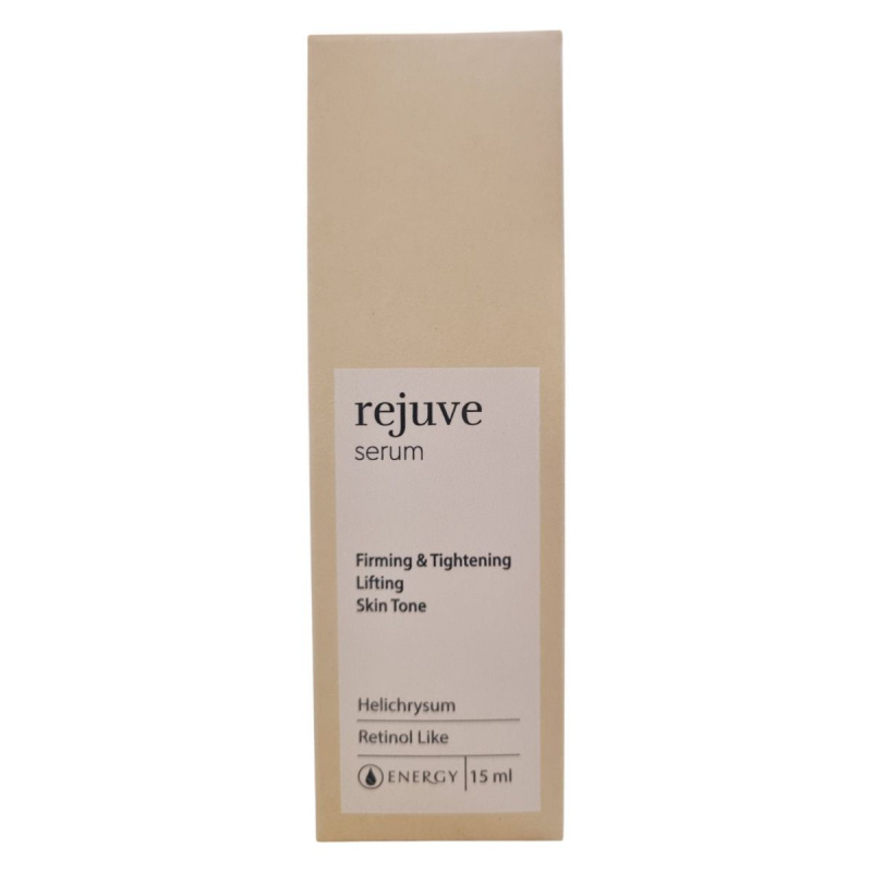 A Rejuve Serum egy innovatív, erőteljes liftinghatású szérum, amely segíthet kisimítani a ráncokat és csökkenteni a hiperpigmentációt. A termék elősegítheti az elasztin és hialuronsav természetes termelődését, így selymes bőrfelszínt és egységes arcbőrszínt eredményezhet. A szérum E-vitamint, Helichrysum illóolajat, Retin ART-t, ALGAKTIVE® Bio SKN-t, hialuronsavat és szkvalánt tartalmaz. Tárolása száraz helyen, közvetlen napfénytől védve ajánlott, 10–25 °C között. A termék bio irányzatú.