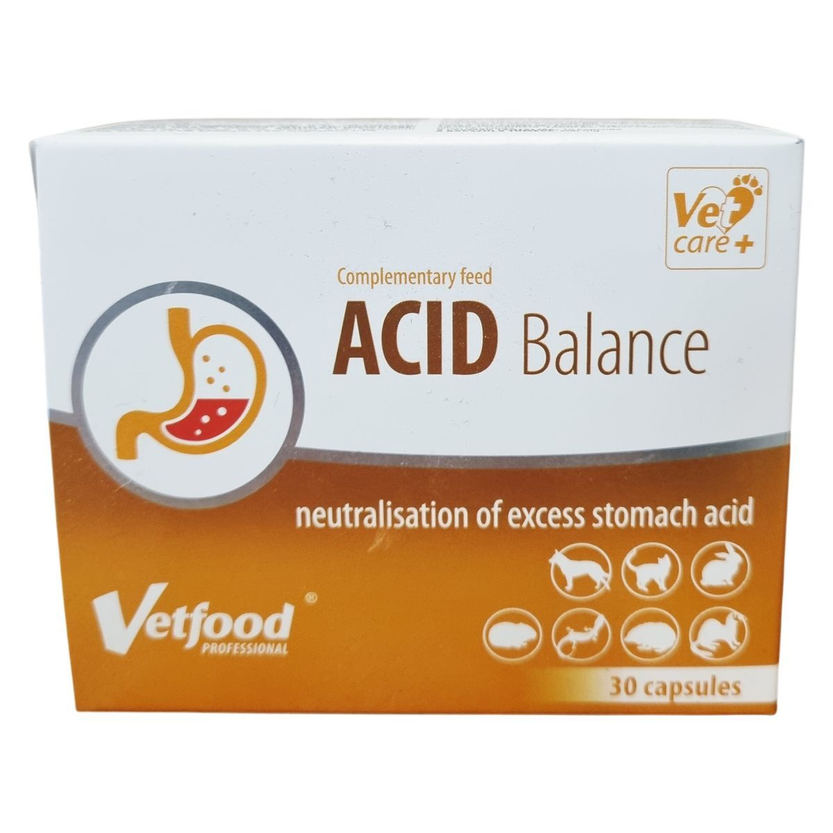 Az ACID Balance olyan kiegészítő állateledel, amely két természetes savlekötőt, kalcium-karbonátot és magnézium-karbonátot tartalmaz, ezek hozzájárulhatnak a gyomorsav mennyiségének közömbösítéséhez. A termékben jelen van továbbá keményítő, inulin és zöldtea-kivonat, melyek támogathatják a gyomornyálkahártya védelmét. Minden alapanyag emberi fogyasztásra alkalmas minősítéssel rendelkezik. A kapszulák 600 mg tömegűek, csomagolásuk 30 darabot tartalmaz. A kapszula tartalma szükség esetén az eledelbe keverhető, különösen száraz takarmányozás esetén ajánlott a szemcsék nedvesítése a por tapadása érdekében.