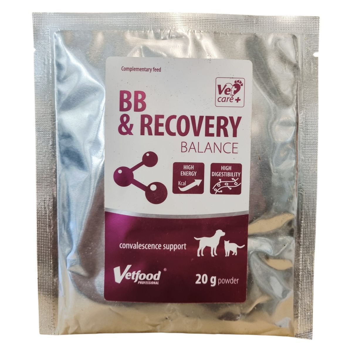 A BB & Recovery Balance por alakú diétás kiegészítő takarmány kutyák és macskák számára, melynek magas energiatartalma és kiváló emészthetősége támogatja a felépülést betegségek, kimerültség vagy műtétek után. A termék kiváló minőségű csirkehús-fehérjére épül, amelynek biológiai értéke 56%, valódi emészthetősége pedig 100%. Egy tasak 14 g fehérjét tartalmaz, ami kb. 54 g normál eledel fehérjetartalmának felel meg. A készítmény egyedülálló AminoMatrix, PowerBlend, RecoveryMix, JointFormula, VitaminComplex, MineralComplex, EnzymeShot és NatureTouch összetevőket tartalmaz, melyek az izomtömeg növelését, energiát, gyors regenerációt, ízületek támogatását, vitamin- és ásványianyag-ellátást, emésztést és növényi hatóanyagokat biztosítanak. Az alkalmazás a gyógyulási folyamat végéig javasolt. Minden alapanyag emberi fogyasztásra alkalmas minősítésű. Magyarországon a terméket a Vitamed Pharma Kft. forgalmazza.